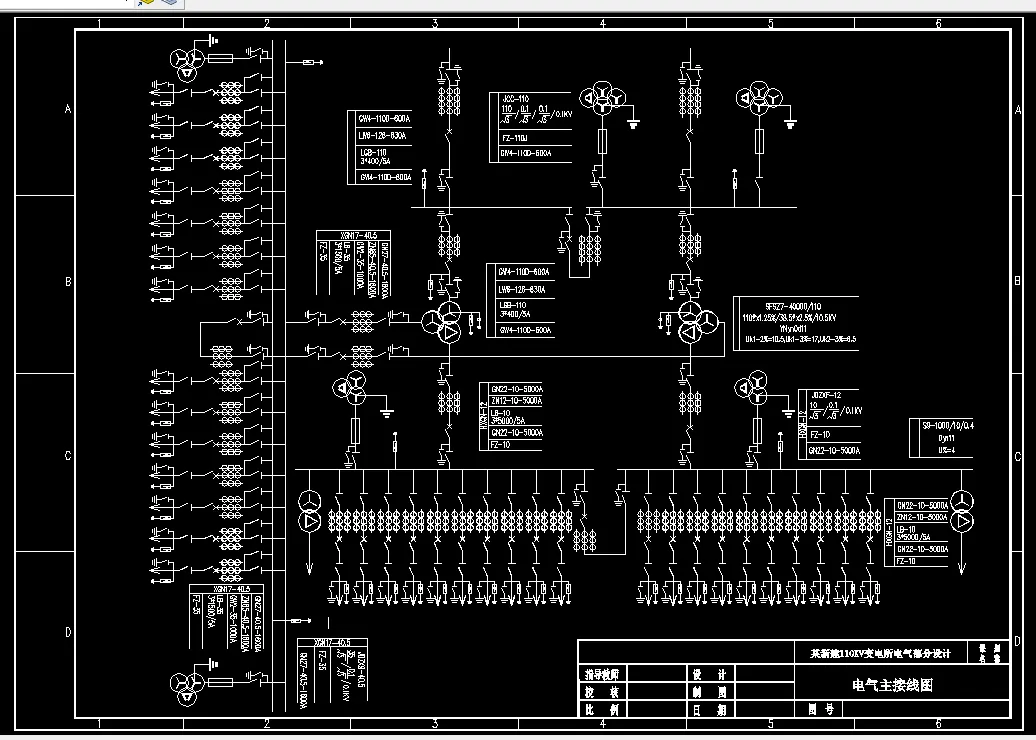 在改革开放四十年之际,我国的电力行业发展非常迅速,许多以电力为基础的高科技产业也在国际上崭露头角。电力的供应离不开变电站,可见变电站对于我们生活、生产的重要性。本论文以一个实际背景为资料,对某110kV变电站进行电气设计,此变电站有三个电压等级分别是110kV、35kV和10kV。本设计中主要包括一次设计和部分二次设计,一次设备主要包括主接线选择、主变压器选择、短路电流计算、一次设备选择与防雷保护等,二次设计主要包括继电保护,最后还要使用CAD制图软件完成相关的图纸绘制。