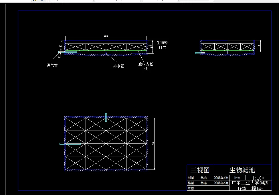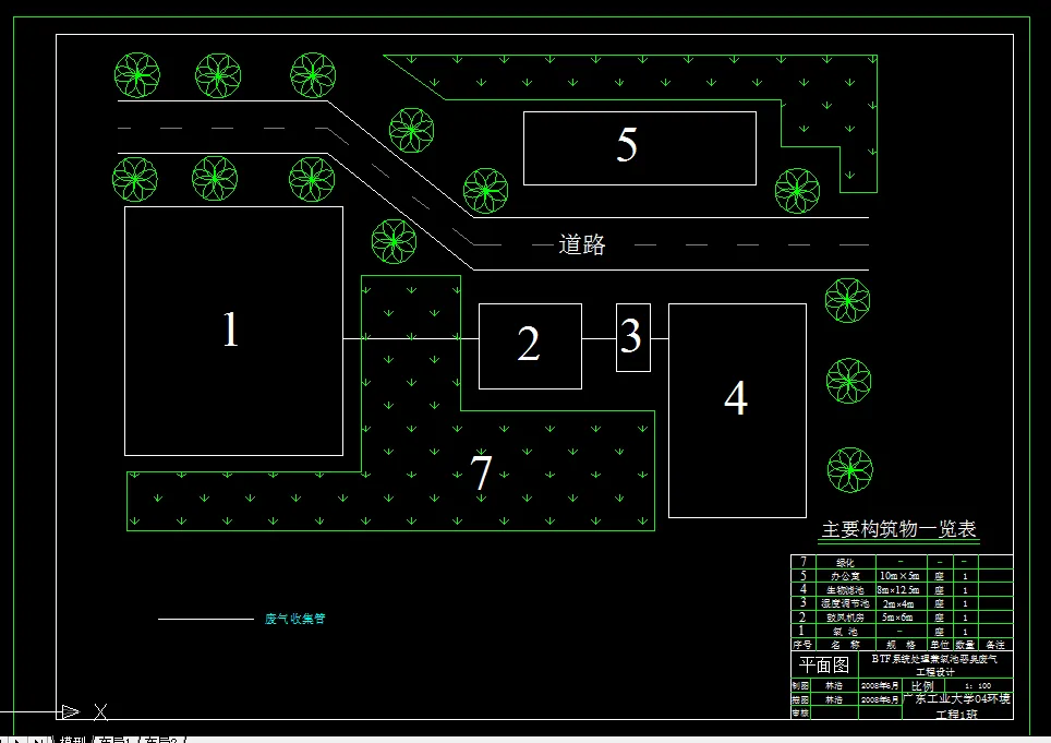 本毕业设计方向是采用生物法处理低浓度恶臭气体的设计,既是BTF系统处理兼氧池恶臭废气工程设计,BTF系统就是指生物滴滤池系统。考虑到工程实际经济可行性本毕业设计决定采用生物滴滤池工艺。设计以阔叶林树木材锯末为填料,通过将气体加湿,调节PH值,使气体中的恶臭成分在微生物的作用下分解为二氧化碳和水。具体内容是在气流量确定的情况下设计生物滴滤池等设备以净化恶臭气体其中包括集气罩、管道布置、风机选择、鼓风机房、填料等各方面的设计计算,以实现90%祛除恶臭污染物的最终效果。