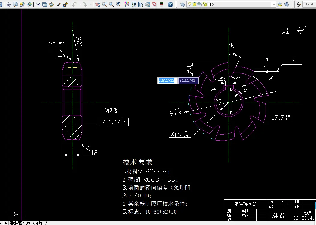 3. 矩形花键铣刀设计