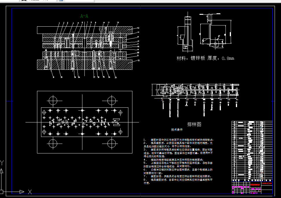 摘要:冲压工艺作为传统工业领域的一个重要分支,是一种比较先进的金属加工方法。这种冲压生产方法可以用于大批量生产。但对这种工艺而言,其中单工位模具结构单一,其钣金件的形状不能过于繁琐,不然只能制造多副单工位模具才可以实现生产目的。如果采用级进模进行冲压生产的话,就可以合理克服这些缺点。本文以收录机芯的开门推板级进模为例,综合运用冲压工艺与模具设计的理论知识具体分析解决收录机芯的开门推板模具设计问题,强化大学期间所学专业知识,熟练运用CAD,进一步学习了解冲压模具的发展情况,并对多工位级进模的设计过程和设计步骤以及设计要点进行探索。