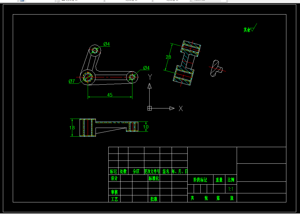杠杆加工工艺规程及夹具设计是包括零件加工的工艺设计、工序设计以及专用夹具的设计三部分。在工艺设计中要首先对零件进行分析,了解零件的工艺再设计出毛坯的结构,并选择好零件的加工基准,设计出零件的工艺路线;接着对零件各个工步的工序进行尺寸计算,关键是决定出各个工序的工艺装备及切削用量;然后进行专用夹具的设计,选择设计出夹具的各个组成部件,如定位元件、夹紧元件、引导元件、夹具体与机床的连接部件以及其它部件;计算出夹具定位时产生的定位误差,分析夹具结构的合理性与不足之处,并在以后设计中注意改进。