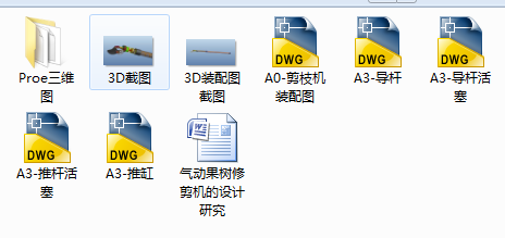 1.设计了一款适用于我国大部分果树树钟的气动剪枝机,先对剪枝机整体结构及其工作原理进行分析,再将气动果树剪枝机结构分为五大结构进行设计。使用Proe三维绘图软件对本设计的气动剪枝机各零件进行三维建模并完成装配,同时使用该软件的机构部分对气动剪枝机进行运动仿真分析。