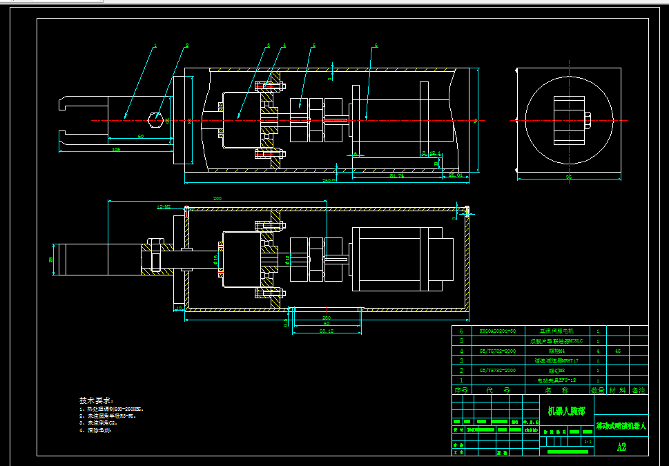 通过总体设计,结构选型,对各个部分的驱动、传动系统进行设计,然后进行详细的计算校核,得出机械臂和移动平台的详细参数,通过CAD绘图对结构进行绘制和优化,完成机器人的设计。