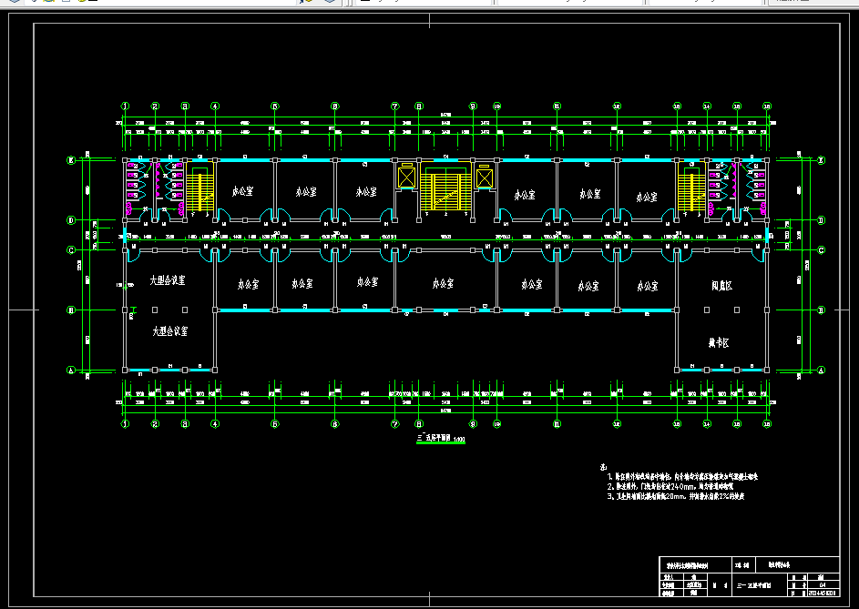 本毕业设计为斯坦中学办公楼,建筑方案采用凹字型,总建筑面积为5466.3平方米。结构设计内容包括建筑设计、结构设计。该结构主体为5层,其底层为5米,中间层3.9米,室内外的高差0.6米。建筑设计图部分采用天正建筑设计,建筑设计图包括建筑设计总说明、底层平面图、二到四层标准层平面图、顶层平面图、屋面平面图、立面图、剖面图。结构设计部分包括结构设计总说明、楼屋面板设计、一榀框架结构设计、楼梯设计。