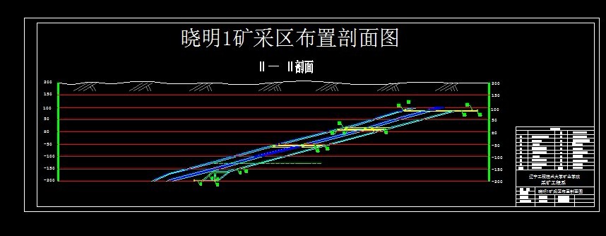 晓明一矿拥有两层煤,煤层和煤厚分别是分别为5煤(平均厚度5m),2煤(平均厚度9.8,与5煤间距30m)。煤层东西走向约为3.9km,南北倾斜约为4.12km,井田面积约为15.57 km2。倾角在12度。工业储量为2.4亿t,设计储量为2.31亿t,可采储量为1.6亿t。本设计说明书从矿井的开拓、开采、运输、通风、提升及工作面的采煤方法等各个环节进行了详细的叙述,设计严格遵守《设计规范》和《煤矿安全规程》,整个矿井采用了采区以及带区的准备方式,提高了开采能力,为矿井的增产打下了良好的运输基础。采煤方法采用走向长壁综合机械化放顶煤采煤方法以及倾斜长壁综合机械化放顶煤采煤方法。工作面支护方式为液压支架支护方式,端头支护采用端头支架。本设计采用立井多水平上山开拓,主井采用箕斗提升,副井采用罐笼提升,大巷采用集中布置。通风方式为中央分列式。本次设计是晓明一矿新井设计,地质资料都是在实习矿上搜集的,在指导教师的指导下,并合理运用平时及课堂上积累的知识,查找有关资料和文献,力求设计出一个高产、高效、安全的现代化矿井。
