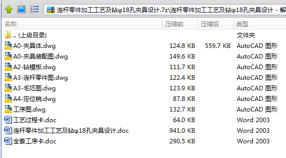 此次设计是对连杆零件的加工工艺和夹具设计,其零件为锻件,具有体积小,零件复杂的特点,由于面比孔易加工,在制定工艺规程时,就先加工面,再以面为基准来加工其它,其中各工序夹具都采用专用夹具,特别的对于加工大头孔、和钻小头孔斜面小孔的工序中,选一面挡销的定位方式,并以操作简单的手动夹紧方式夹紧,其机构设计简单,方便且能满足要求。