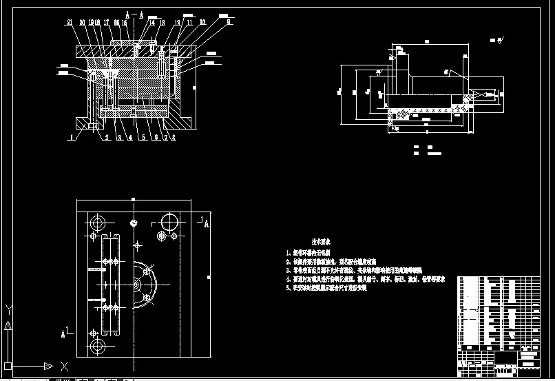 关键词:注射模、一模四腔、侧向抽芯、点浇口、推板推出。