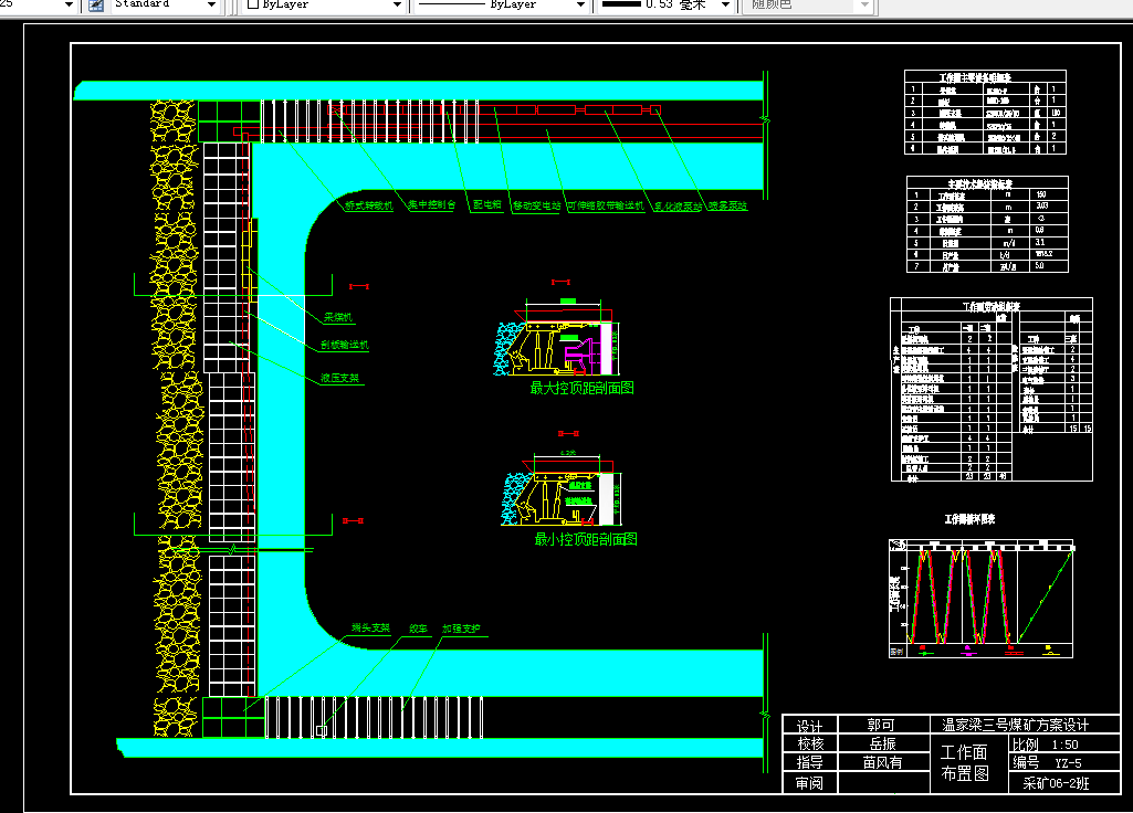 考虑到该煤矿的具体埋藏特征,该设计决定使用综合机械化采煤。回采工作面布置长度为150m,年推进1188m,经过计算选择了MG300-W双滚筒采煤机、SGWD-180刮板机、ZZ6000/25/50悬移支架等相关的设备。最终使得设计回采工作顺利完成。