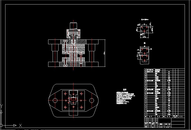 最后,根据我们计算出地凸凹模刃口尺寸数据和模具设计过程中的结构,尽量选用合适的标准件,做到标准化,从而完成装配图以及主要零件的设计。最后在进行确定和校核模具高度,选择合适的标准模架,进行压力机校核,以满足实际生产的需要。