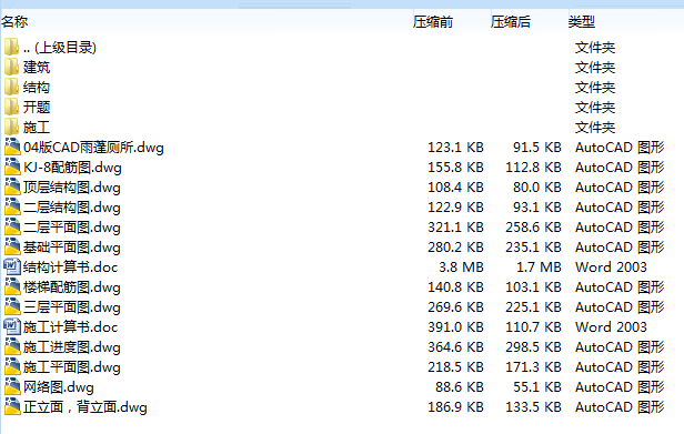1.建筑施工图。包括:①建筑设计说明,门窗表。总平面,2#图②底层平面图,南立面1#图③标准平面图,北立面1#图④屋顶平面,侧立面,剖面,檐口大样1#图