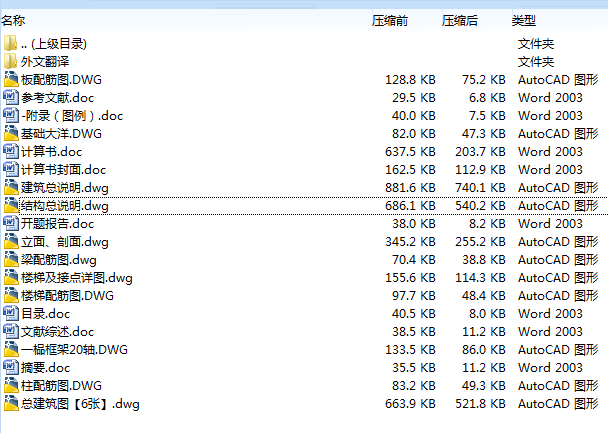 本次设计共完成建筑图纸9张,结构图纸7张,计算书73页。