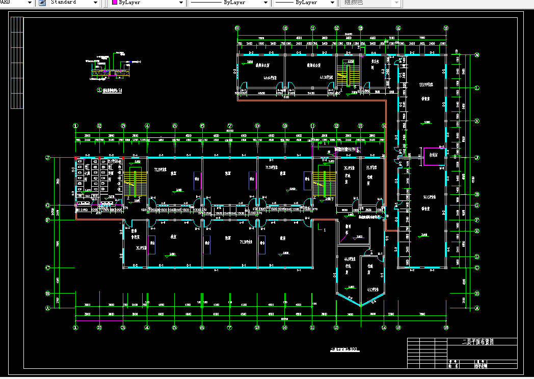 ③语音教室、微机教室 各 2间 143.50 m2 、 133.99 m2 含辅助房间:35.1 m2