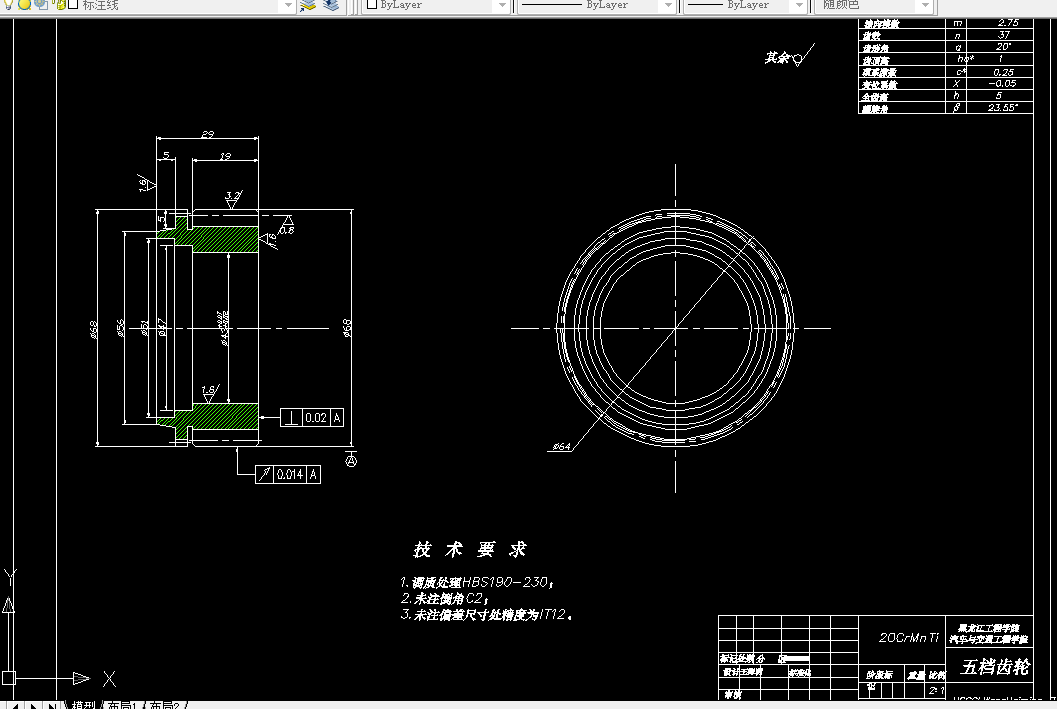 本设计结合机械变速器的设计方法,深入研究了变速器传动比的计算,挡数的分配,齿轮参数的计算,轴及轴承的选择等,从而使乘用车的舒适性和动力性有很大的提高。