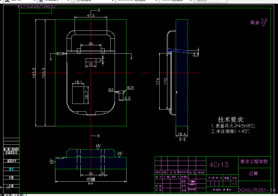 掌上电脑电池后盖注塑模设计,具有复杂的曲面,要求有良好的外观质量。因此,分型面,浇口的位置要选择适当,需要借助UG软件进行分模设计,并完成模具的2D总装图和若干零件图的绘制。
