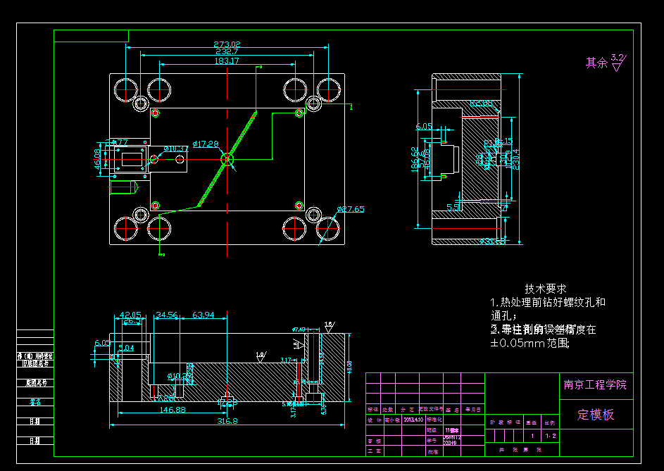 本论文应用本专业所学课程的理论和生产实际知识进行一次冷冲压模具设计工作的实际训练从而培养和提高了我的独立工作能力。本设计通过对固定夹的复合模设计的工艺性分析,确定了正确的工艺方案。从而对模具设计方案,以及冲压设备作出了分析与选择。通过分析决定采用复合模形式,然后参考其他模具结构以及查手册和计算设计。当所有的参数计算完后,对模具的装配方案,对主要零件的设计和装配要求技术要求都进行了分析。在设计过程中除了设计说明书外,还包括模具的装配图,非标准零件的零件图,工件的加工工艺卡片,工艺规程卡片,非标准零件的加工工艺过程卡片。