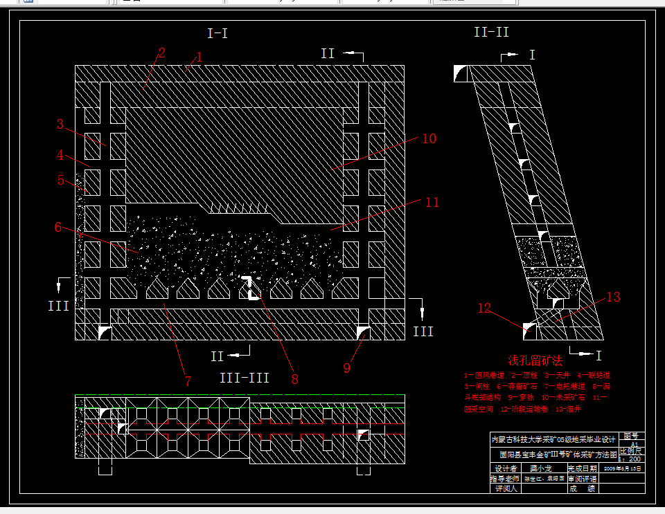 关键词:下盘竖井开拓;浅孔留矿法;中央对角式通风;