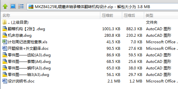 自动数控磨床是钢材板材轧制生产线的重要配套设备,其磨削精度和磨削效率直接影响钢板的轧制质量与生产效率。它的作用是进行各种性质不同的钢材板材磨削,主要应用于钢材、铝箔和造纸行业等。然而其在磨削工作辊的过程中,两端的轴承箱体会与砂轮架发生干涉,而频繁的装卸轴承箱体则会使加工过程变得繁琐,因此设计了翻箱机构,将工件翻转90度。设计翻箱机构,包括翻箱机构的工作原理、机床各部件的组成、其操作要求和方法以及翻箱机构技术要求进行了概述,并详细设计了MKZ84125轧辊磨床的翻箱机构,其中包括法案的选择,电机的确定以及蜗轮蜗杆与各个轴以及齿轮的选择并画出了机床总装图,翻箱机构总装配图以及部分重要零件的部件图。其设计过程主要特点是采用三相异步电动机带动蜗轮蜗杆以及齿轮传动,以达到将工件翻转90度的效果,方便磨床加工。翻箱机构结构简单紧凑,操作简单,维护方便,翻转工件效率高。