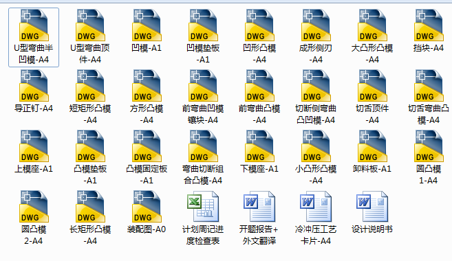 金属板料冲压是一种在工业生产中应用广泛的加工方法。随着现代各行各业突飞猛进的发展,金属件的结构复杂,精度高,需求量多,加上对生产的安全性、操作的方便性,加工的经济性等要求也日益提高,采用单工位模具已经无法满足生产的需要,许多制造商均采用多工位级进模进行生产。因此,多工位级进模在国内外模具制造业中应用日趋广泛。多工位级进模是在普通级进模的基础上发展起来的一种模具,是当代所有模具中冲压功能最多、结构最复杂、生产效率和自动化程度最高的一种冲模。在多工位级进模结构设计过程中,首先必须设计级进模的总装结构,然后再在此基础上进行模具其他零部件的设计。本模具采用切废料方式进行冲裁,故模具结构采用冲孔、导正、弯曲、落料的工序设计,排样采用单排横排排列。本论文分析了侧弯支架的冲压工艺性,介绍了侧弯支架多工位级进模总体结构设计,对工件进行了展开计算,确定了工件加工成型的工艺方案和排样方案,对模具进行了工艺计算,根据计算结果进行了凸模、凹模、垫板、导料板、卸料板、镶块等主要零部件的设计,还根据各标准对模具中用到的其他标准件,如模架、导柱导套等,进行了选择与设计。实践证明:该模具结构合理、可靠,并能保证产品质量,对此类零件的级进模设计有参考价值。