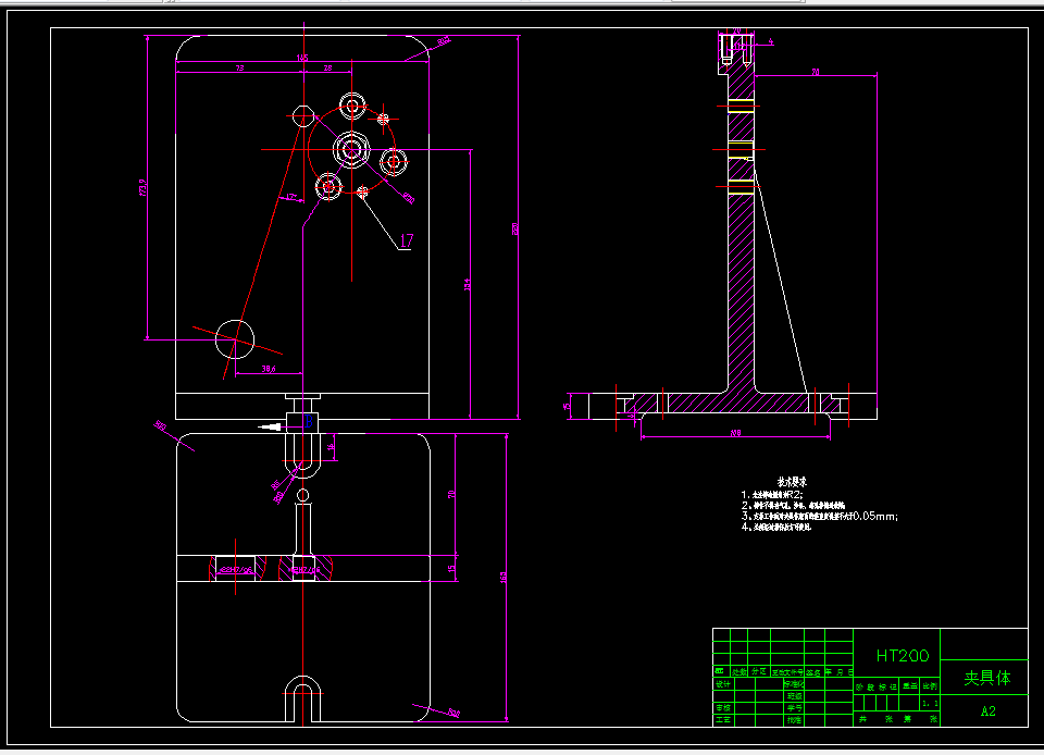 高低挡变速叉零件加工工艺及夹具设计是包括零件加工的工艺设计、工序设计以及专用夹具的设计三部分。在工艺设计中要首先对零件进行分析,了解零件的工艺再设计出毛坯的结构,并选择好零件的加工基准,设计出零件的工艺路线;接着对零件各个工步的工序进行尺寸计算,关键是决定出各个工序的工艺装备及切削用量;然后进行专用夹具的设计,选择设计出夹具的各个组成部件,如定位元件、夹紧元件、引导元件、夹具体与机床的连接部件以及其它部件;计算出夹具定位时产生的定位误差,分析夹具结构的合理性与不足之处,并在以后设计中注意改进。