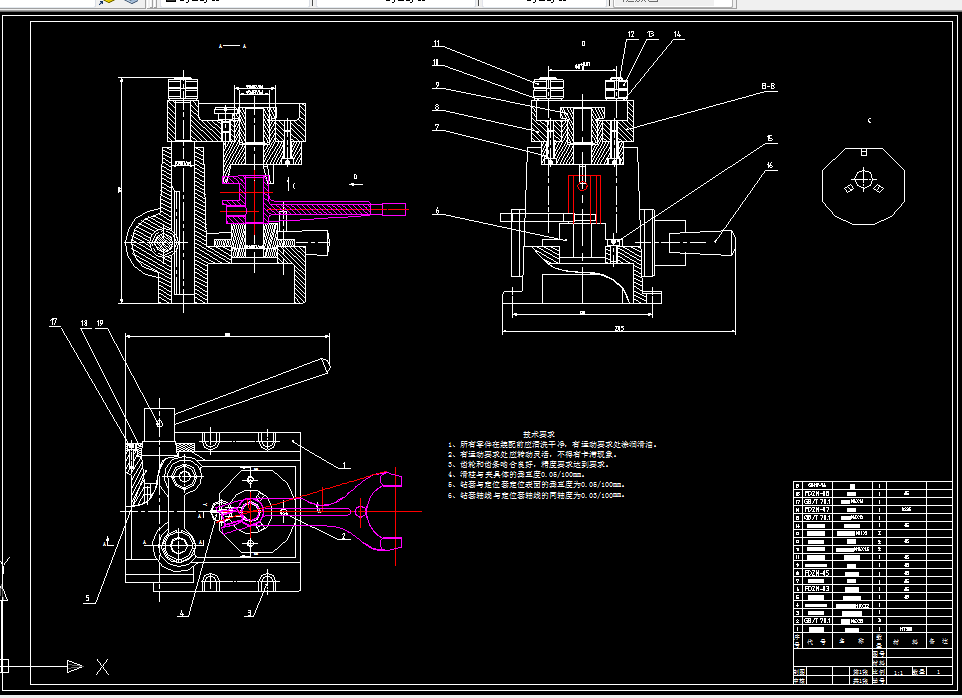 此次设计是对变速叉零件的加工工艺和夹具设计,其零件为锻件,具有体积小,零件复杂的特点,由于面比孔易加工,在制定工艺规程时,就先加工面,再以面为基准来加工其它,其中各工序夹具都采用专用夹具,并以操作简单的手动夹紧方式夹紧,其机构设计简单,方便且能满足要求。