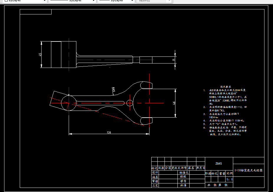 变速叉零件的加工工艺和夹具设计课题。在进行设计过程中,首先是对变速叉零件的图纸分析。了解到图纸的各个表面加工的精度要求以及粗糙度要求等。然后再确定每一加工表面进行确定加工方案。制作一条合理的加工工艺规程方案。加工工艺规程在加工过程中尤为重要的一部分。因为其可以直接影响到零件的加工精度和加工效率。一般来说,要想保证加工的精度。那么需要确定加工表面的加工过程方案。要想保证加工效率,那么需要对其进行设计夹具。这两者在整个设计中缺一不可。本文中,变速叉零件其图纸要求较高。那么进行加工时,要做到加工分粗精加工。不同表面按照实际情况出发,对于精度要求高的表面。要做到先粗加工然后再进行精加工。而夹具设计的环节中,要考虑夹具设计的夹具结构不能复杂。这样有利于操作和维修。在进行夹具设计中,要确定夹具设计误差的分析和计算。确定所设计夹具符合要求再进行对其操作。