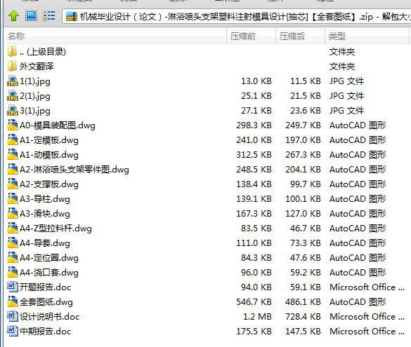 本文主要介绍了淋浴喷头支架塑料件的注射模设计,其间要参考大量与塑料成型相关的资料和翻阅各种模具设计手册,并通过计算以确定模具的具体模具制造技术迅速发展,已成为现代制造技术的重要组成部分。如模具的CAD/CAM技术,模具的激光快速成型技术,模具的精密成形技术,模具的超精密加工技术。根据成型工艺要求,在原有塑料件的基础上介绍了其注塑成型模具的结构,阐述了模具设计要点及工作过程。首先要从塑料生产工艺上对所要设计的产品进行工艺的分析与计算,然后在分析计算的基础上并参看相关的资料确定成型工艺方案,再在此基础上进入模具总装配图的结构设计。在此基础上对注塑模具的主要零部件的尺寸进行设计与计算,期结构及尺寸,通过不断的计算与修改,并在指导老师的悉心关怀和耐心指导下进行不间断的反复修改,最终独立完成这次毕业设计。其材料为ABS。根据ABS塑料的工艺特性和产品的使用要求,分析了手表盒盒底的结构特点和成型工艺。本设计采用CAD技术进行模具装配图及零件图的绘制。对模具进行了成型零部件、浇注系统、侧向抽芯机构、推出脱模机构及冷却系统的设计分析。最后,完成模具总装图设计及主要零件图的绘制,从而确保模具结构的可靠性、合理性和实用性。
