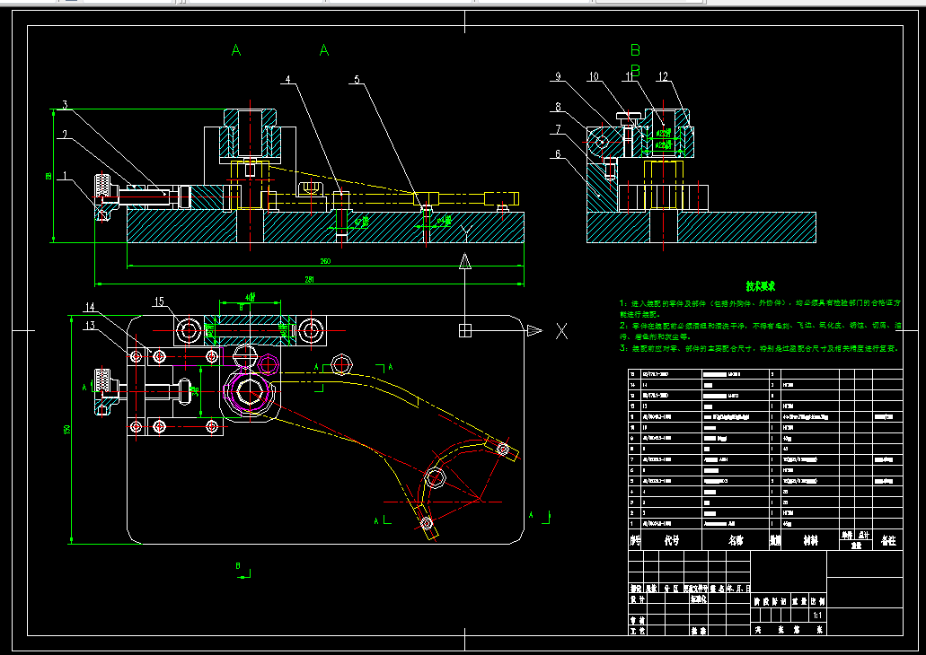 拨叉加工工艺规程及其夹具设计是包括零件加工的工艺设计、工序设计以及专用夹具的设计三部分。在工艺设计中要首先对零件进行分析,了解零件的工艺再设计出毛坯的结构,并选择好零件的加工基准,设计出零件的工艺路线;接着对零件各个工步的工序进行尺寸计算,关键是决定出各个工序的工艺装备及切削用量;然后进行专用夹具的设计,选择设计出夹具的各个组成部件,如定位元件、夹紧元件、引导元件、夹具体与机床的连接部件以及其它部件;计算出夹具定位时产生的定位误差,分析夹具结构的合理性与不足之处,并在以后设计中注意改进。