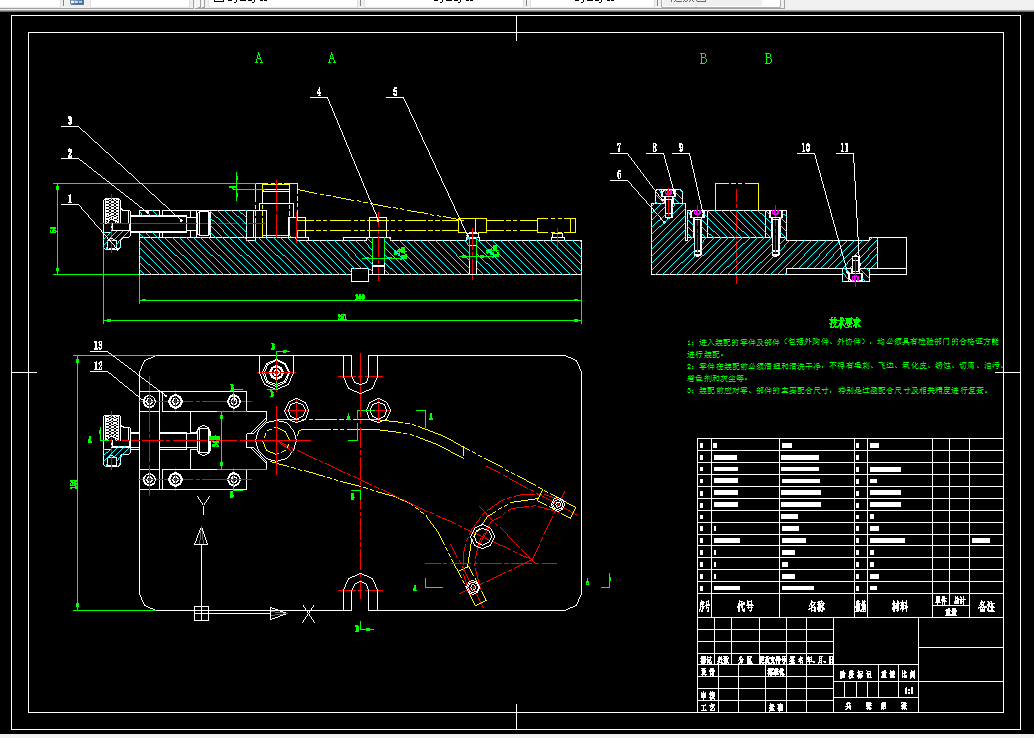 拨叉加工工艺规程及其夹具设计是包括零件加工的工艺设计、工序设计以及专用夹具的设计三部分。在工艺设计中要首先对零件进行分析,了解零件的工艺再设计出毛坯的结构,并选择好零件的加工基准,设计出零件的工艺路线;接着对零件各个工步的工序进行尺寸计算,关键是决定出各个工序的工艺装备及切削用量;然后进行专用夹具的设计,选择设计出夹具的各个组成部件,如定位元件、夹紧元件、引导元件、夹具体与机床的连接部件以及其它部件;计算出夹具定位时产生的定位误差,分析夹具结构的合理性与不足之处,并在以后设计中注意改进。