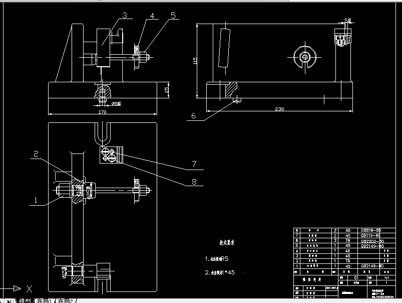 本次设计是车床变速箱中拔叉零件的加工工艺规程及一些工序的专用夹具设计。此拔叉零件的结构较为复杂,其加工的地方主要是孔和平面。本设计先加工孔后加工面。将孔与平面的加工明确划分成粗加工和精加工阶段以保证它们的加工精度。基准选择以拔叉Φ32外圆作为粗基准,来加工中间的通孔,然后以此加工过的孔作为精基准。主要加工工序安排是先以中心孔定位加工出顶平面和右侧平面以及下面的大孔的两平面,再以中心孔定位加工出下端的大孔。加工时是用镗床镗孔。最后以这两个孔为基准,分别加工右侧的槽和顶面的螺纹底孔。整个加工过程选用了钻床、铣床和镗床。工件在机床上定位夹紧选用专用夹具,夹紧方式为手动夹紧,夹紧可靠,操作方便。因此生产效率较高,适用于大批量、流水线上加工。能够满足设计要求。