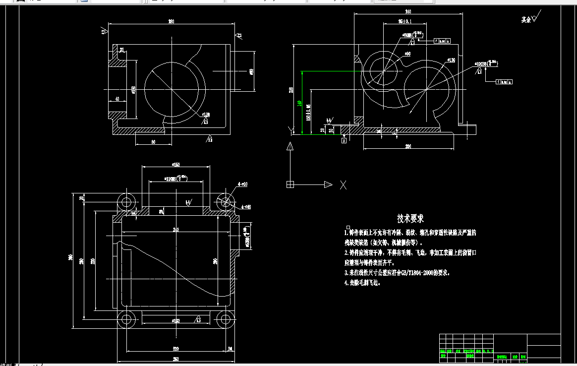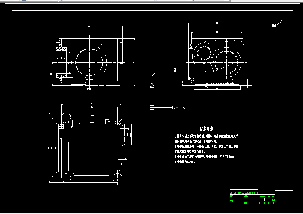 通过分析本次箱体一般用于涡轮减速器上,减速器箱体一般采用铸铁砂型铸坯成型,铸铁的抗拉强度、塑性和韧性要比碳钢低。虽然铸铁的机械性能不如钢,但由于石墨的存在,却赋予铸铁许多为钢所不及的性能。如良好的耐磨性、高消振性、低缺口敏感性以及优良的切削加工性能。此外 ,铸铁的碳含量高,其成分接近于共晶成分,因此铸铁的熔点低,约为1200℃左右,铁水流动性好,由于石墨结晶时体积膨胀,所以传送收缩率小在经过机械加工将其加工至使用要求,在生产过程中,减速器箱体的加工工艺定制非常重要,工艺的编制决定了减速器箱体的精度及生产效率,尤其是这种大批量生产的减速器箱体,其工艺规程要考虑到产量问题。同时为了保证工件的加工精度,以及为了提高生产率而研发出各个工序的专用夹具,是操作者使用起来简单、快速、准确,从而在保证精度的前提下大大提高生产率。