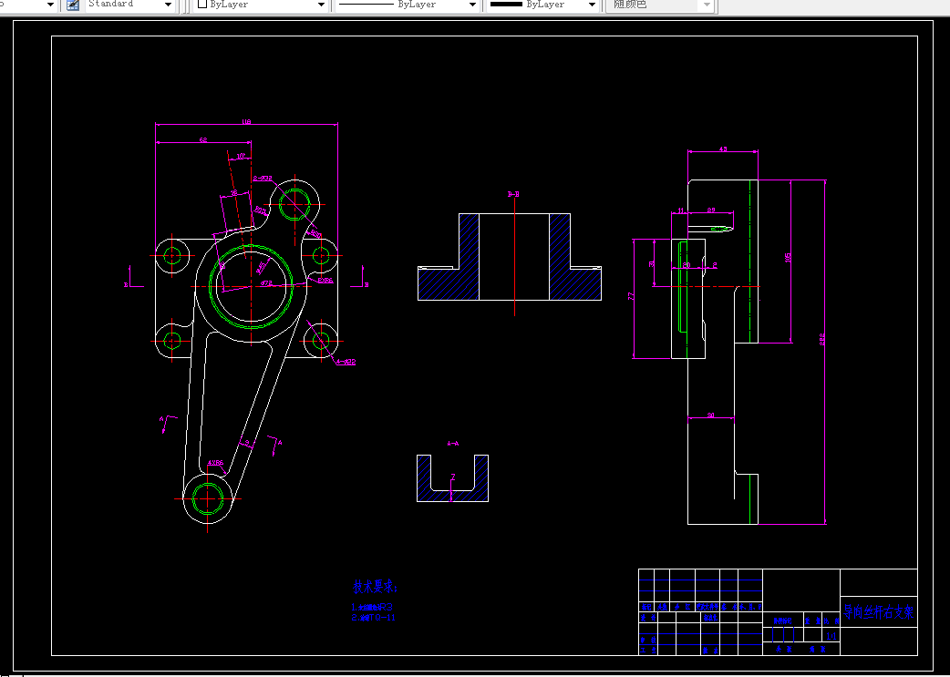 导向丝杆右支架的加工工艺及铣端面夹具设计是包括零件加工的工艺设计、工序设计以及专用夹具的设计三部分。在工艺设计中要首先对零件进行分析,了解零件的工艺再设计出毛坯的结构,并选择好零件的加工基准,设计出零件的工艺路线;接着对零件各个工步的工序进行尺寸计算,关键是决定出各个工序的工艺装备及切削用量;然后进行专用夹具的设计,选择设计出夹具的各个组成部件,如定位元件、夹紧元件、引导元件、夹具体与机床的连接部件以及其它部件;计算出夹具定位时产生的定位误差,分析夹具结构的合理性与不足之处,并在以后设计中注意改进。