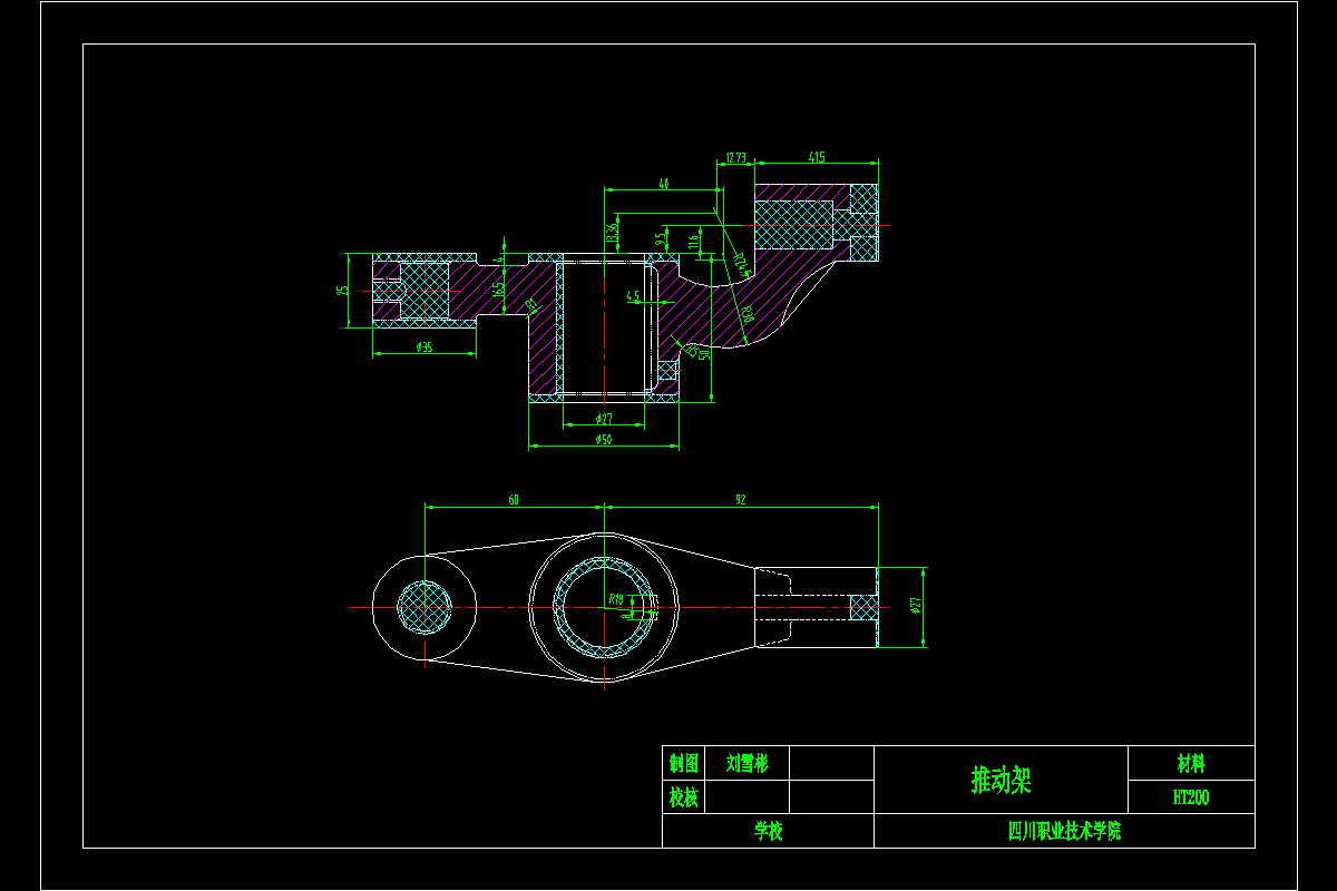 本文选择了推动架作为研究对象,它的主要作用是将从电动机传来的旋转运动通过偏心轮杠杆使推动架绕其轴心线摆动,以实现工作台的自动进给。
