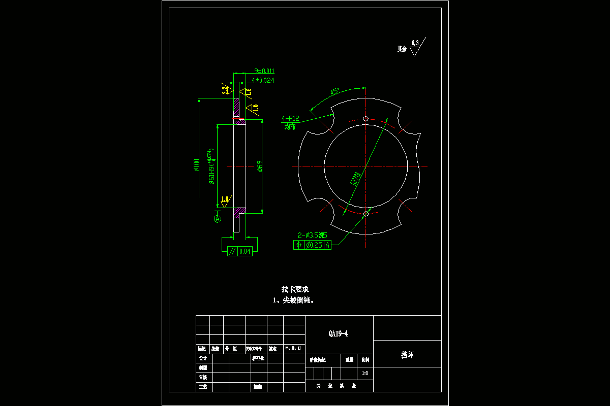 关键词:挡环、工艺、2-Ф3.5孔、钻床、专用夹具