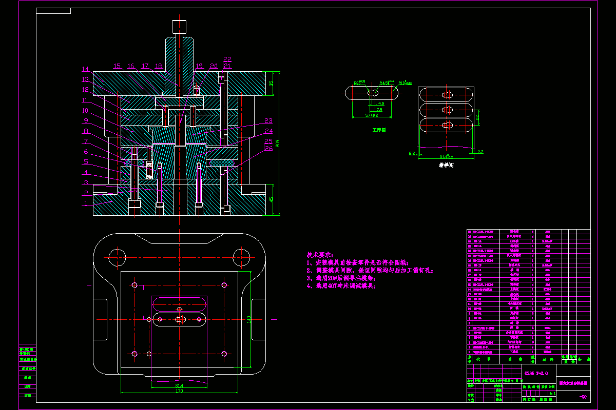 本应用本专业所学课程的理论和生产实际知识进行一次冷冲压模具设计工作的实际训练从而培养和提高了我的独立工作能力。本设计通过对固定板的复合模设计的工艺性分析,确定了正确的工艺方案。从而对模具设计方案,以及冲压设备作出了分析与选择。通过分析决定采用复合模形式,然后参考其他模具结构以及查手册和计算设计。当所有的参数计算完后,对模具的装配方案,对主要零件的设计和装配要求技术要求都进行了分析。在设计过程中除了设计说明书外,还包括模具的装配图,非标准零件的零件图等。
