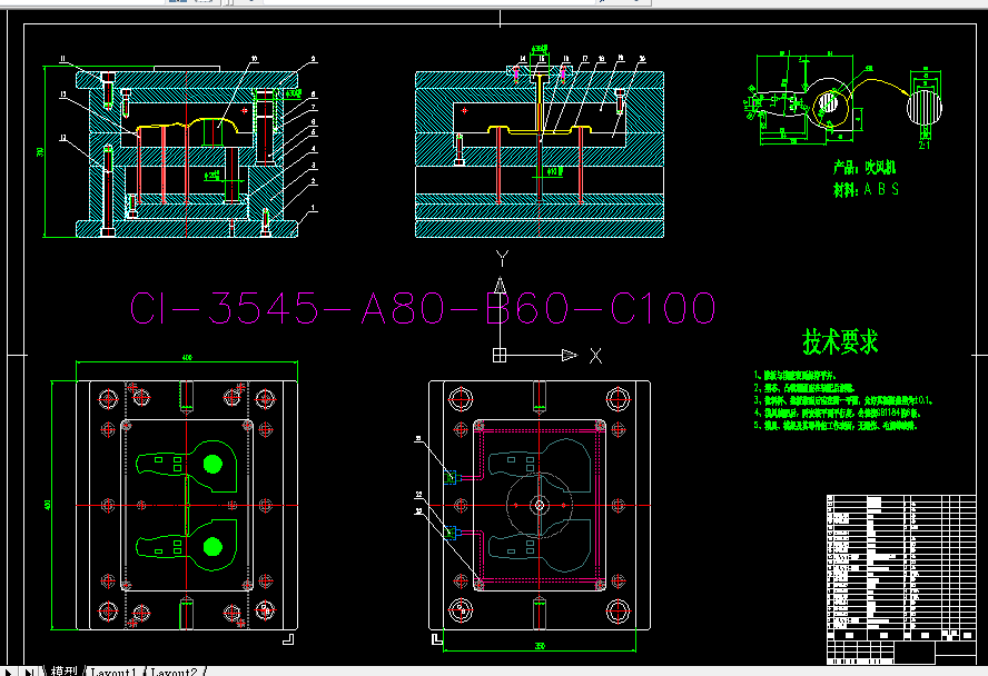 关键词 单分型面注射模具;ABS;塑料模具。