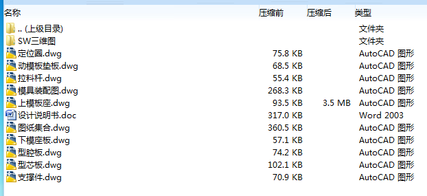 2、若题目上备注三维,则表示文件里包含三维源文件,由于三维组成零件数量较多,为保证预览截图的简洁性,本站将三维文件夹进行了打包。三维及CAD预览截图,均为本站电脑打开软件进行截图的,保证能够打开,下载原件超高清,下载后解压即可;