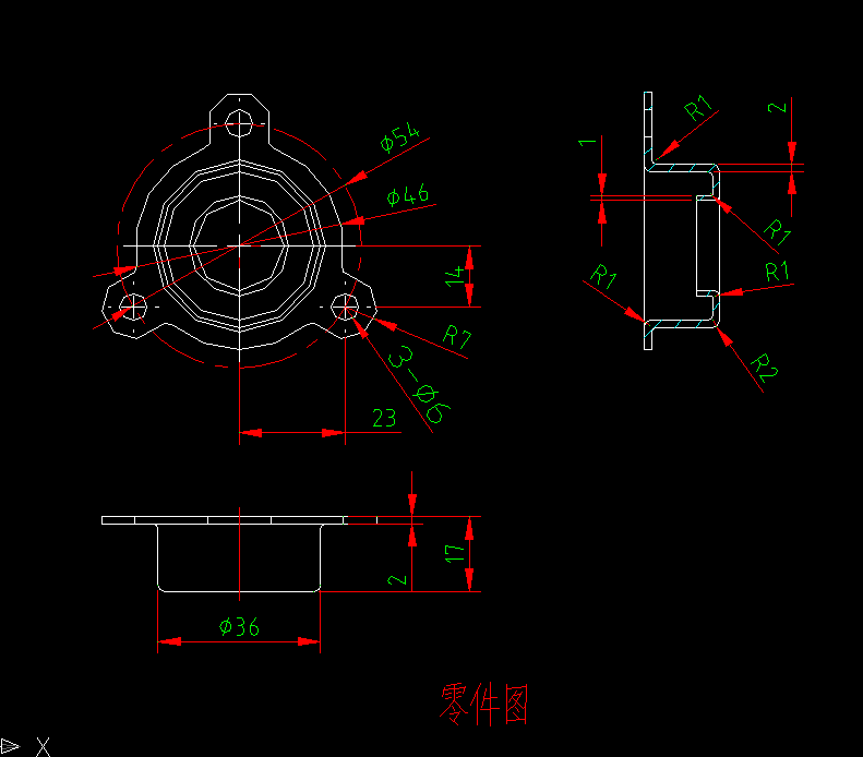 本次设计是压盖连续冲裁模的设计,制件为压盖。本文借鉴了冷冲压模具设计的全部过程。文章主要过程是从产品的工艺分析到最后设计冲压模具,首先,通过对制件的特点的了解,进一步对制件进行工艺分析,确定该制件符合冷冲压加工的要求。冲压工艺方案和结构确定为级进模具冲压,并对级进模进行设计。除对制件进行排样分析和计算搭边值、冲压力、以及确定模具压力中心外还重点分析了制件的凸模、凹模及其凸凹模结构并进行设计、计算,定位零件的选取和结构分析,以及固定方式等技术难点,最终通过AutoCAD进行绘图,得到相关零件的零件图及级进模具的装配图。