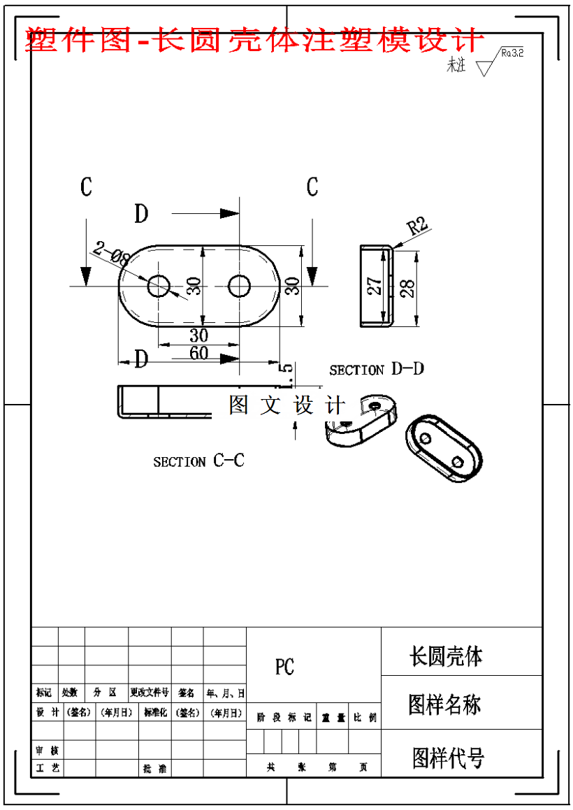 本次设计的题目是长圆壳体注塑模具设计,设计的目的在于通过长圆壳体模具的设计,在运用已学专业知识和查阅工程手册的基础上,深入的了解模具设计等方面的内容,培养综合运用所学专业知识和技能,独立解决本专业一般工程技术问题的能力,充分提高运用所学知识解决实际生产的能力,系统实践AutoCAD和UG软件的应用。塑件主体为盒体,所使用的材料为PC。要求对塑件进行工艺分析、注塑模具初步方案设计,选用合适的注射机。