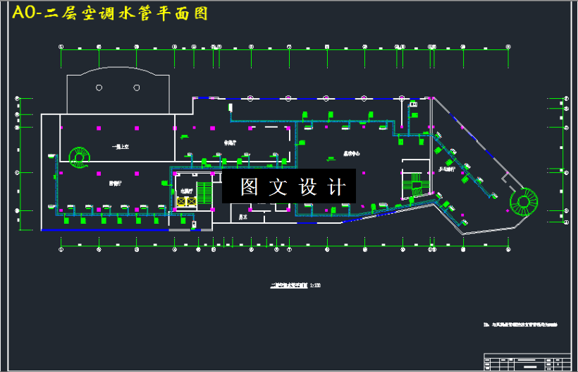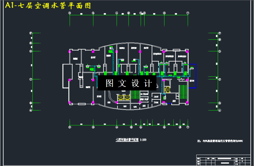 本工程位于杭州市,某7层大酒店是集餐饮,休闲娱乐,商务办公,住宿为一体的城市综合建筑,建筑层数为7层,一至五层层高均为4m,六层和七层为3.5m,总建筑面积为12527.1m,其中空调面积为7842m2。某7层大酒店是一家集餐饮、办公、休闲娱乐和住宿等为一体的多功能商业建筑。建筑共七层,一至五层层高均为4m,六层和七层层高均为3.5m,总高度27m。建筑总面积为12527.1m,其中空调区域的面积为7842m2。空调房间类型主要有接待大厅、商务中心、酒吧、KTV房、餐厅、保龄球厅、办公室、客房以及洗浴中心等。使用鸿业负荷计算8.0软件对该建筑空调房间进行负荷计算,夏季总冷负荷最大值为981.6kW,出现时间为17:00,空调面积冷指标为126.0W/m2,新风总冷负荷为374.1kW。由于各功能房间使用时间不统一,从满足顾客舒适度和空调节能角度出发,选用风机盘管加新风系统,各房间可独立控制系统的开启和关闭。在接待大厅、酒吧、桌球中心等大面积房间采用新风与风机盘管送风相独立的送风方式;在KTV房、餐厅包房、办公室以及客房等小面积房间采用新风与风机盘管送风相混合的送风方式。考虑到装修要求,风机盘管选用开利卧式暗装42系列,新风机组选用开利吊顶式DBFPX系列。风机盘管进出水管均安装阀门,以方便之后的维修保养需要。新风机组的选型满足所需的风量、冷量以及余压需求。一至五层每层均设置2台新风机组,六层和七层各设置1台。吸风口处装有防雨百叶,风管采用软连接,并安装防火阀。可利用半吊顶的房间,如客房,采用侧送风方式,侧送风口选用双层百叶形式;其他房间均采用散流器送风方式,散流器选用方形散流器;回风口采用单层百叶形式,上送上回。冷冻水系统采用两管制、闭式循环系统,各层水管异程布置,使用调节阀调节平衡。