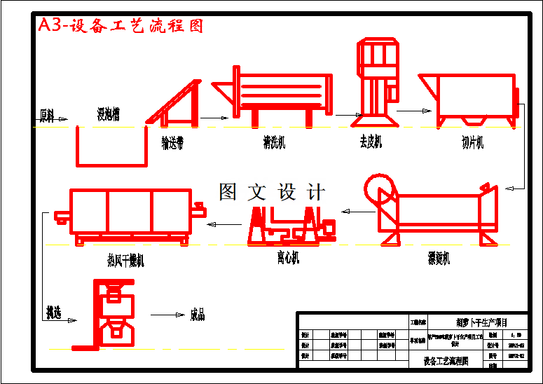 年产量600吨干制胡萝卜,员工48~60人,技术人员10人左右。该厂是一座主要是干制胡萝卜的生产,年加工产量为600吨,主要产品为胡萝卜干。厂址是南北向的长方形厂区,东西向宽65m,南北向长80m,占地面积是7.8亩。地势平坦,全年主风向为西南风。主要生产车间布置在全厂南北纵向上的中心地带,形成生产区;由它带起的原料库及车间、仓库,和动力设施及供水设施(锅炉房、空压站、变电所、水处理间)分别布置在后侧,左前方和右侧;行管部门和检测中心在厂前区,生产车间在其后面,十分方便;生活区在厂区右侧前部,与厂区用墙隔开,便于生产与生活的管理,符合生产卫生设计要求。厂内交通通畅,主要道呈南北向,运输原料、燃料等十分方便。从长远的发展角度出发,在厂区右上角设计了发展预留地。