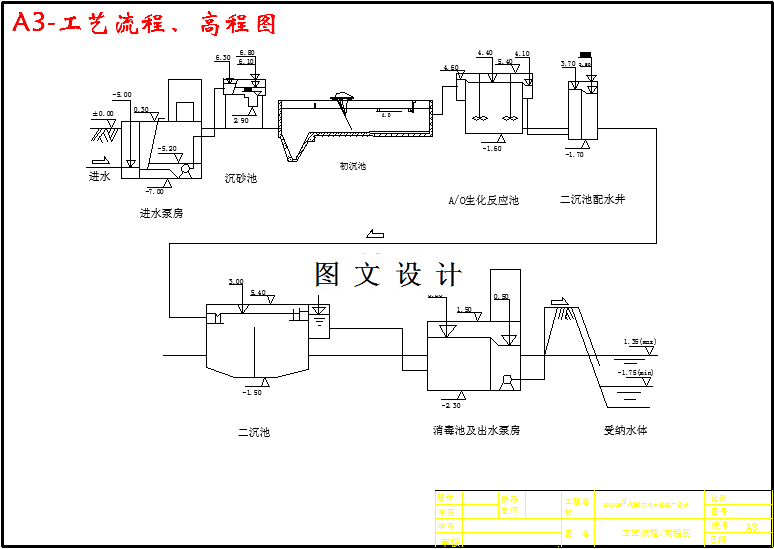 本设计要求处理水量为10000m3/d的城市生活污水,设计方案针对已运行稳定有效的A/ O活性污泥法工艺处理城市生活污水。AO工艺由于不同环境条件,不同功能的微生物群落的有机配合,加之缺氧条件下,部分不可生物降解的有机物(CODNB)能被开环或断链,使得N、P、有机碳被同时去除,并提高对CODNB的去除效果。该工艺将反硝化段设置在系统的前面,因此又称为前置式反硝化生物脱氮系统,是目前较为广泛采用的一种脱氮工艺。反硝化反应以污水中的有机物为碳源,曝气池混合液中含有大量硝酸盐,通过内循环回流到缺氧池中,在缺氧池内进行反硝化脱氮。