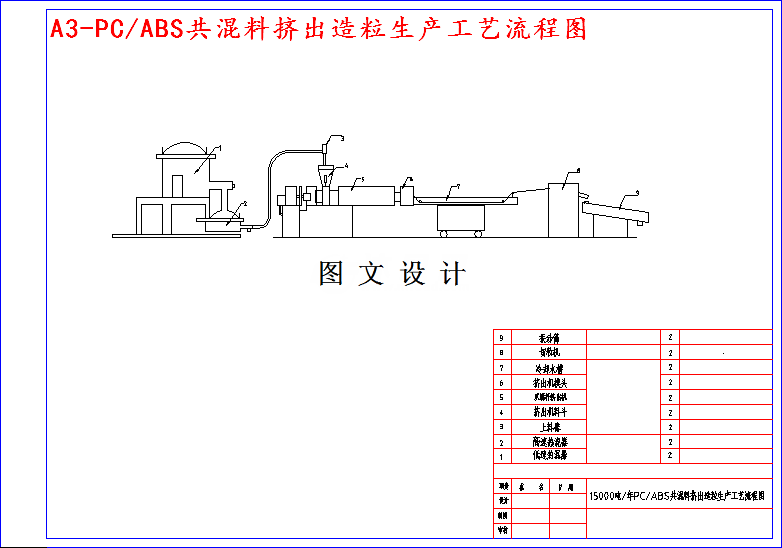 综述了PC树脂、ABS树脂单一材料的性能以及PC/ABS共混料的性能,近年来我国PC/ABS共混料的发展现状以及国内外的一些研究进展,知道了PC/ABS共混料在国内的应用与发展前景,尤其是在电器外壳方面方面。PC/ABS共混料比起单一的PC树脂、ABS树脂具有更加优越的力学性能与更好的适应性能,可以适应更多不同的使用环境。本设计详细的介绍了PC/ABS共混料的挤出工艺,PC/ABS共混造粒生产线的工艺并不复杂,选择普遍使用的双螺杆挤出造粒的成型方法生产PC/ABS粒料,通过配方筛选、物料衡算、设备选型、工艺参数控制等过程对整个工艺流程作了较为详尽的阐述。并从降低成本、提高性能、应用前景等各方面考虑设计了较为合理的PC/ABS共混造粒生产配方和留有发展潜力的生产设备,计算其生产车间所需的各种生产设备和总投资成本,对实际投资建设PC/ABS共混料造粒生产车间的各个方面具有积极的指导作用。