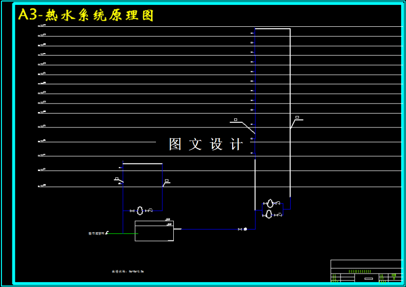 本设计是某15层大酒店建筑给排水设计,主要包括给水、排水、消防和热水四个方面。给水部分采用分区来进行供水,本设计一层到二层,不需要水泵提升,直接用市政管网的水压供水;三层到十四层算作高区,需要水泵从地下贮水池抽水,高区采用的是采用环状供水。整个酒店的排水系统初步确定的是污水和废水分流制,坐便器流出的污水必须经化粪池处理后才能排入市政污水管网;消防系统在采用室内消火栓系统的同时,也要采用自动喷水灭火系统,设立两重防火系统,双保险。火灾最初的10min消防所需水量由屋顶消防水箱来供应,消防水箱的水源跟高区给水原理类似,由消防泵从消防水池抽取;10min之后,消防用水的来源有所变化,其是由消防启动消防水泵,水从消防水池流出供消火栓使用。热水采用的是封闭式机械半循环系统,分区情况大致和冷水系统一致,冷水通过电加热器集中加热后,再由提升泵供向配水管网;给水管采用的是不锈钢钢管,排水采用塑料管和铸铁管,消防系统和热水系统采用钢管。整个设计都是参照《建筑给水排水工程》(第六版),设备的选型和计算参照规范。设计计算书做完了以后,用CAD画图,进行最后的完善工作。