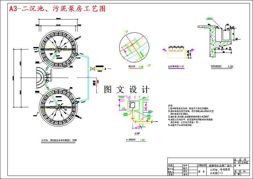 设计题目:8万m3d污水处理厂工艺设计 设计任务与内容: 1.污水处理工艺选择及各工艺单元的设计,包括工艺流程的确定,各单体构筑物的工艺设计。 2.污泥处理方法选择及污泥处理构筑物的工艺设计计算。包括工艺流程的确定,单体构筑物的工艺设计; 3.污水泵站的工艺设计,包括选泵、泵站工艺设计计算; 4.污水处理厂的平面布置。包括污水处理厂处理构筑物和辅助建筑物的平面布置图及工艺平面图绘制; 5.污水处理厂竖向布置及调和计算。 6.工艺流程图、高程布置图、平面布置图、重要构筑物图、重要设备安装图等的绘制。