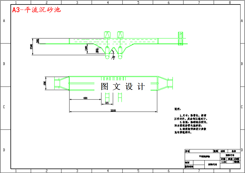 一种截留废水中粗大污物的预处理设施,是由一组平行的金属栅条制成的金 属框架,斜置在废水流经的渠道上,或泵站集水池的进口处,用以截阻大块的呈 悬浮或漂浮状态的固体污染物,以免堵塞水泵和沉淀池的排泥管。截留效果取决 于缝隙宽度和水的性质。污水由进水泵房提升至细格栅沉砂池,细格栅用于进一 步去除污水中较小的颗粒悬浮、漂浮物。沉砂池主要用于去除污水中粒径大于0.2mm,密度2.65t/m3的砂粒,以保护 管道、阀门等设施免受磨损和阻塞。沉砂池有平流式、竖流式、曝气式和旋流式 四种形式。由于旋流式沉砂池有占地小,能耗低,土建费用低的优点;竖流式沉 砂池污水由中心管进入池后自下而上流动,无机物颗粒借重力沉于池底,处理效 果一般较差;区旗沉砂池则是在池的一侧通入空气,使污水沿池旋转前进,从而 产生与主流方向垂直的横向恒速环流。砂粒之间产生摩擦作用,可使沙粒上悬浮 性有机物得以有效分离,且不使细小悬浮物沉淀,便于沉砂和有机物的分别处理 和处置。平流式沉砂池具有构造简单、处理效果好的优点。本设计采用平流式沉 砂池。
