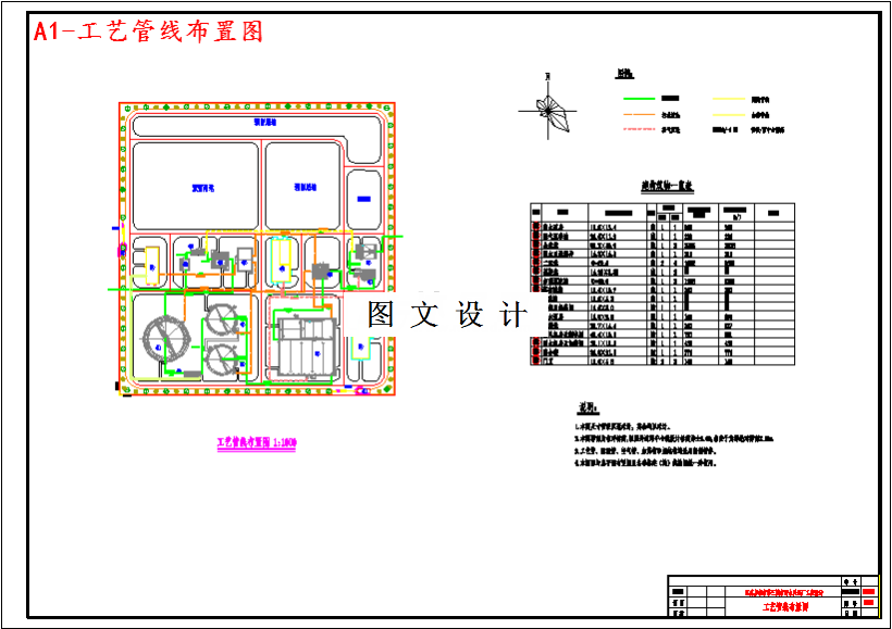本设计的主要设计参数如下:曝气沉砂池:水力停留时间:2 min生化反应池:总水力停留时间:12.7 h(选择区 1.0 h,厌氧区 1.5 h,缺氧区 2.2 h,好氧区 8.0 h)生化段污泥总负荷:0.15 kgBOD5/(kgMLSS·d)生化段总泥龄:15d污泥浓度 MLSS:3.5 g/L混合液内回流比:200%综合污泥产率:0.6 kgMLSS/kgBOD5二沉池:水力停留时间:2.5 h设计水力表面负荷:0.95 m3/(m2·h)混凝反应池:水力停留时间:5 min加药沉淀池:水力停留时间:2.5 h设计水力表面负荷:1.47 m3/(m2·h)滤布滤池:总过滤面积:144 m2紫外消毒池:照射剂量:28mJ/cm2本设计采用的 A2/O+混凝沉淀+滤布滤池+紫外消毒工艺,是传统工艺与新兴技术的结合,出水水质好,占地面积适量,且运行费用低廉,管理方便。经计算论证,本设计预期水质高于国家《城镇污水处理厂污染物排放标准》的一级 A 标准的相关水质要求。污水处理厂厂区总体布置分 区功能明确,水利通畅,管理方便,绿化覆盖率满足设计要求。