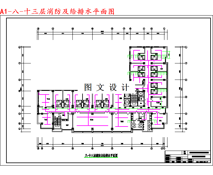 本设计为某18层大厦给水排水及消防系统设计。总建筑面积约为20500m2,建筑总高度为61.15m,地上18层,地下一层。地下一层为地下车库及设备用房,可设水泵房、设备控制室、配电室生活水箱等。1-7层为办公室, 8-18层为宾馆及办公室。此外,屋顶设有水箱间。其中地下室1层层高为5.4m,其余每层层高为3.3m。设计主要包括对建筑内的给水排水工程以及与之配套的室内外部分给水排水工程的设计,具体包括:室内冷水系统、热水系统、消防系统、自动喷洒系统、排水系统以及雨水系统。在给水系统的设计中,本设计采用分区给水的方式。低区为1至7层,高区为8至18层。高、低区均采用变频调速泵供水,采用下行上给的供水方式,供水可靠性较好,节省能源。该建筑为高层宾馆综合大楼,按照高层民用建筑防火规范,消火栓宜布置在明显、经常有人出入且使用方便的地方,因而在该建筑的房间走廊中,电梯的前室以及地下室中均布有消火栓。其中屋顶水箱应贮存火灾初期10min的消防水量。该建筑危险等级为中危险级Ⅰ级,采用湿式自动喷水灭火系统,由湿式报警装置,闭式喷头和管道等组成。设置3个湿式报警装置,分别控制地下室至6层、7层至13层、14层至18层的闭式喷头。热水系统采用立管循环的系统,低区不供热水,高区为下行上给的布置形式,高区为8至18层。最不利点水温大约为60℃,换热器的出水温度为70℃。管道中水温在60℃—70℃之间。本建筑的生活污水采用分流制排放。雨水采用内排水系统。生活污水和雨水经集水井后排放到市政污水管网。在设计过程中,主要的依据是建筑给水排水设计规范、高层民用建筑设计防火规范、建筑设计防火规范,自动喷水灭火系统设计规范等。