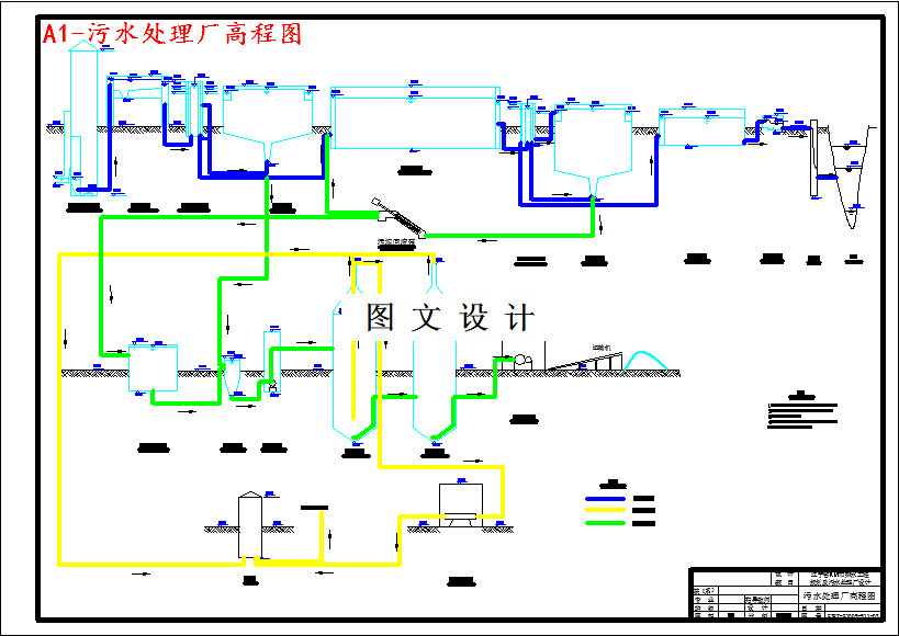 本市区面积和约为1549.11公顷,人口约为44.63万人。被一条铁路分成两部分,右面部分又分为上下两个区域,其中还有三个规模较大的工厂和一个公园。一区的人口密度为270人/公顷,污水量标准190升(人·日),二区的人口密度为300人/公顷,污水量标准170升(人·日),三区人口密度290人/公顷,污水量标准160升(人·日)。在城市的南部有一条自东向西流动的河,常年主导风向为西南风,冰冻深度是0.9米,地下水位是7米。排水体系需要收集城市的生活污水,工业废水,以及雨水三部分。排水体制采用分流制体系,尽管在造价上比合流制高一些,但是在处理的难易程度和效果上来说,分流制都要比合流制好的多。根据实际情况,污水厂建在城市的西南角,远离城区,占地约8公顷。污水厂的水处理分为两步:一级处理,二级处理。其中,一级处理包括格栅,污水泵站和沉砂池,二级处理是重点,它采用了A-A-O生物除磷处理工艺。经过初沉池,A-A-O反应池,二沉池,混合池等主要的构筑物。通常情况下,经二级处理的水已达到排放的标准,可以直接排放到工厂附近的水体。而不会给环境带来严重的问题。污泥处理工艺采用中温厌氧二级消化,污泥最后由离心脱水机脱水后外运卫生填埋。而污泥经过消化,产生的沼气可以作为再生能源利用。