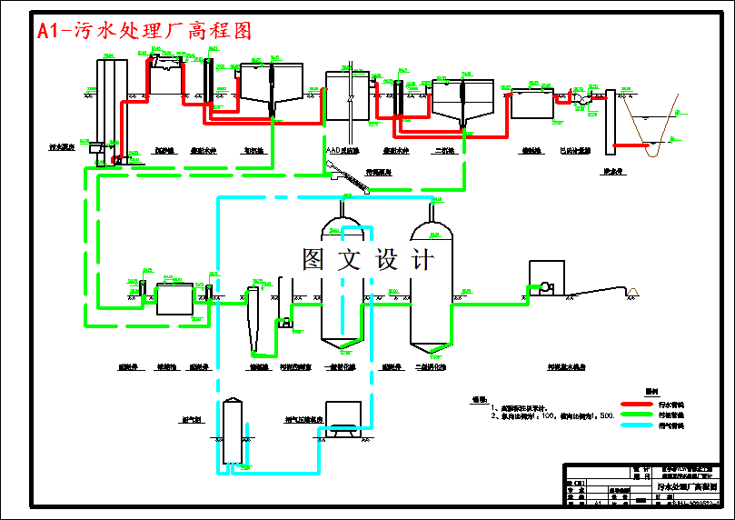 本设计的主要内容为辽宁省YLW市排水工程规划及污水处理厂工艺设计。城市排水体制采用分流制排水系统。雨水就近排入城市附近河流。城市污水经城市污水管网输送至城市污水厂统一处理后排入河流。本市区面积和约为1600公顷,人口约为45万。被一条铁路分成两部分,其中还有三个规模较大的工厂。一区的人口密度为310人/公顷,污水量标准120升(人·日),二区的人口密度为290人/公顷,污水量标准120升(人·日)。在城市的南部有一条自西向东流动的河,常年主导风向为西南风,冰冻深度是0.7米,地下水位是7米。为了减少投资和降低管道埋藏深度,我们在布置管网时考虑一定要充分利用地形地势。排水体系需要收集城市的生活污水,工业废水,以及雨水三部分。排水体制采用分流制体系,尽管在造价上比合流制高一些,但是在处理的难易程度和效果上来说,分流制都要比合流制好的多。根据实际情况,污水厂建在城市的东南角,远离城区,占地约15公顷。污水厂的水处理分为两步:一级处理,二级处理。其中,一级处理包括格栅,污水泵站和沉砂池,二级处理是重点,它采用了传统活性污泥法处理污水。经过初沉池,曝气池,二沉池,混合池等主要的构筑物。通常情况下,经二级处理的水已达到排放的标准,可以直接排放到工厂附近的水体。而不会给环境带来严重的问题。污泥处理工艺采用中温厌氧二级消化,污泥最后由离心脱水机脱水后外运卫生填埋。而污泥经过消化,产生的沼气可以作为再生能源利用。通过该工艺处理排放的污水达到国家一级标准。城市污水得到有效控制,减少其对环境的污染,为城市的发展取得了很好的环境效益、社会效益和经济效益,总之,有利于人类自身的发展。