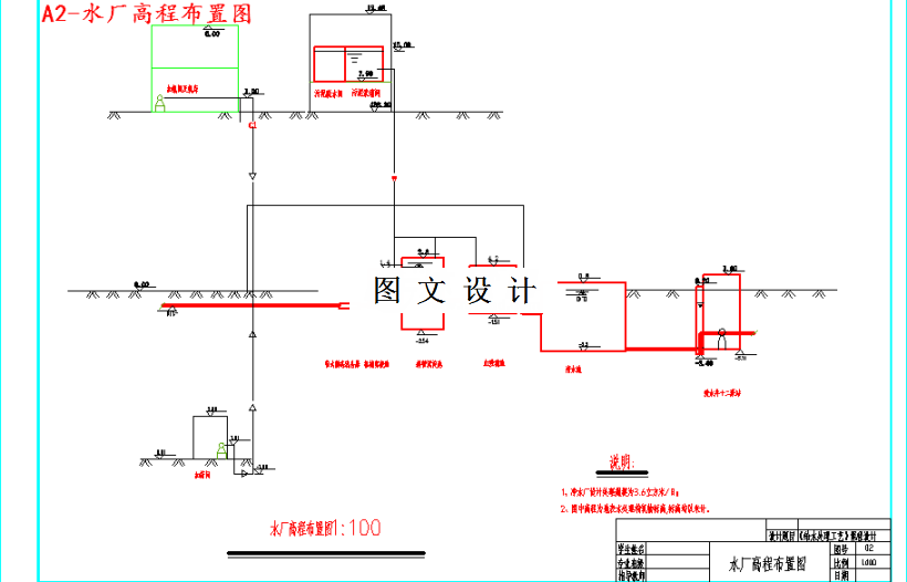 水厂有效生产能力:设计水量为3.6万 m/d(不包括水厂自用水量)。设计内容 选择净水构筑物形式及其组成。 进行构筑物与主要管道的水力计算并决定其尺寸。水厂平面布置,包括:各种生产性构(建)筑物、辅助生产构(建)筑物及附属生活构(活建)筑物的平面定位;生产管线、阀门、排水管道、阀门井、检查井的布置定位。水厂高程布置,确定各生产构筑物的标高、水面标高、管线的埋深及标高。